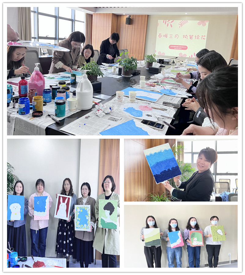 陽(yáng)春三月,萬(wàn)物復(fù)蘇。為慶?!叭恕眹?guó)際勞動(dòng)?jì)D女節(jié),豐富女職工精神文化生活,營(yíng)造愉悅溫馨的節(jié)日氛圍,3月8日上午,市潁科創(chuàng)投公司舉辦“春暖三月 執(zhí)筆繪花”手繪肌理畫活動(dòng),公司全體女職工參加。